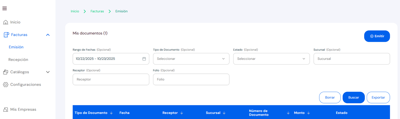 Ha llegado el momento de proceder con la emisión de documentos tributarios. Para ello, selecciona en el sistema las siguientes opciones en orden: